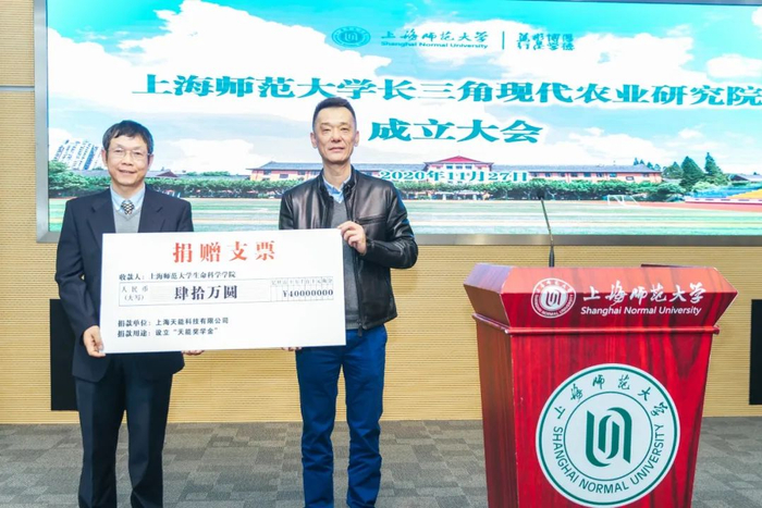 中科院院士陈晓亚、林鸿宣、曹晓风、种康,中科院分子植物科学卓越创新中心研究员何祖华、北京大学现代农学院院长刘春明、上海辰山植物园执行园长胡永红等专家学者,以及生命科学学院党政班子成员和教师代表参加成立大会。会上,上海天能科技有限公司为上海师大长三角现代农业研究院捐赠40万元奖学金,用于支持青年科技人才培养。