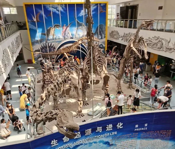 在新旧博物馆安居期间,这具满洲龙化石历经两次拆装,最终以栩栩如生的姿态,傲立在博物馆二楼“生命起源与演化”展厅中央,向广大观众诉说着远古的故事。