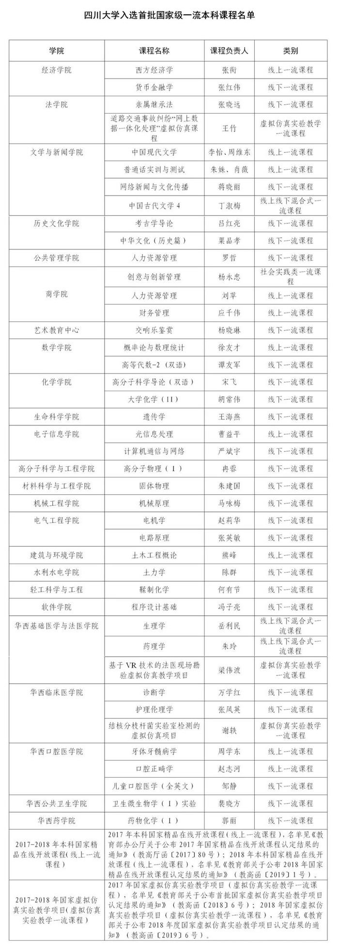 原标题:首批国家级一流本科课程发布!四川大学64门课程入选!