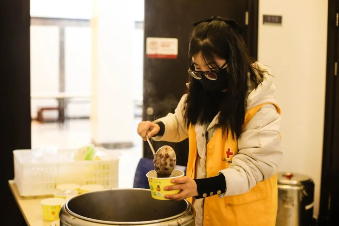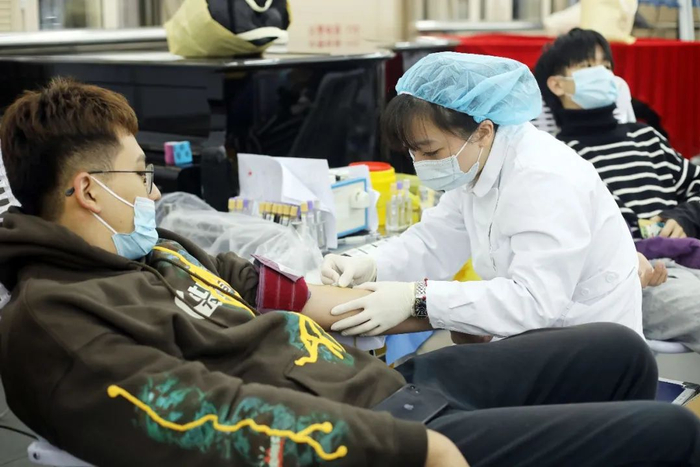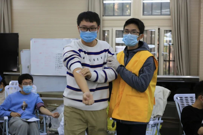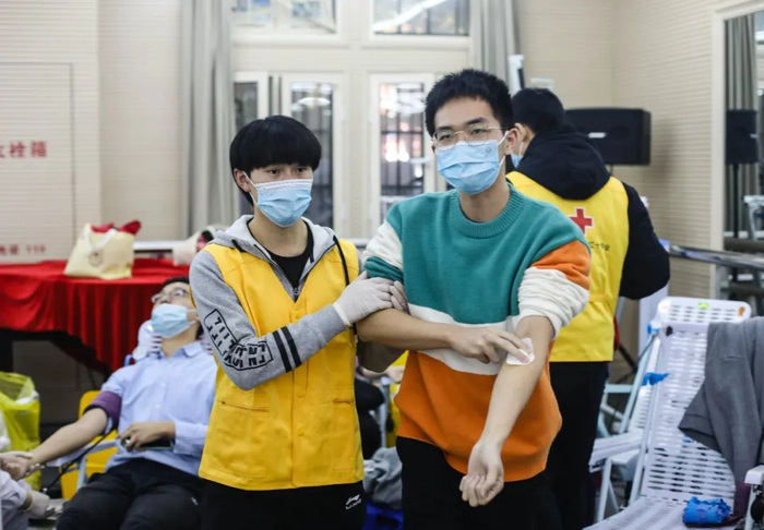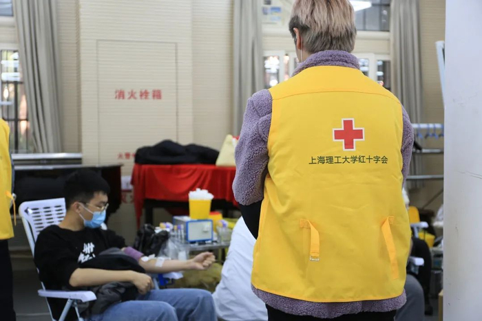 献血活动的现场,还有组织活动的老师们、红十字会的志愿者们......他们整理器材、引导答疑、搀扶同学、分发早餐,协助活动顺利开展。
