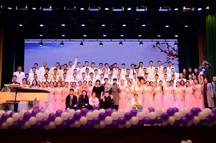 "毕业已经五年有余,然而转身回顾,合唱团依旧是我大学和研究生时代永远不可抹去的回忆,是我一生中最宝贵的财富。2009年加入合唱团,那时的我尚且懵懂,只是单纯热爱唱歌,未曾想在合唱团一待就是六年。六年里,我收获了友情、亲情,还有爱情。最幸运也最感动的是,我认识了汪老师。异地求学,她就像一位慈母,给了我太多鼓励与帮助。她不仅教会我歌唱,更教会我做人,直到我踏上工作岗位,老师的谆谆教诲,依然是我迷茫时的一盏明灯。”老团长范伟同动情地向我们袒露心声。