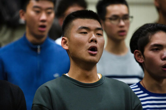 排练好的歌曲就像刚做出来的陶坯,经过各种的润色打磨,上色烘烤,才能制成精美的青花瓷。在大家基本学会所有歌曲之后,汪老师才开始了最难的部分——打磨。在经过爬音阶的开嗓后,钢琴声响起,所有人做好准备,汪老师瞬间充满能量,用声音和手势引导同学们。什么时候男声渐弱,什么时候女声要强,哪个字这里要唱圆,哪处该声音平缓哪处要慷慨激昂。一句一句的重复,一次一次的打断,最终达成圆满的效果。