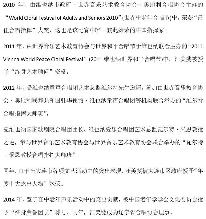 汪美斐老师,是陪伴合唱团最长久的人。她除了合唱团指导老师这一身份外,还有很多荣誉: