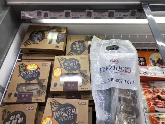 在永辉超市马家堡店,记者此前探访该超市冷冻柜台时,冷冻柜中出售着越南产巴沙鱼、黑虎虾等进口冷链食品,但并没有张贴“北京冷链”二维码。但11月23日记者再次探访时,冷冻柜上方已经集中张贴了二维码,部分价签旁也附上了二维码。“我们进货必须有这个码,之前二维码在仓库,后来有顾客问,我们就全都贴出来了。”一位工作人员说。