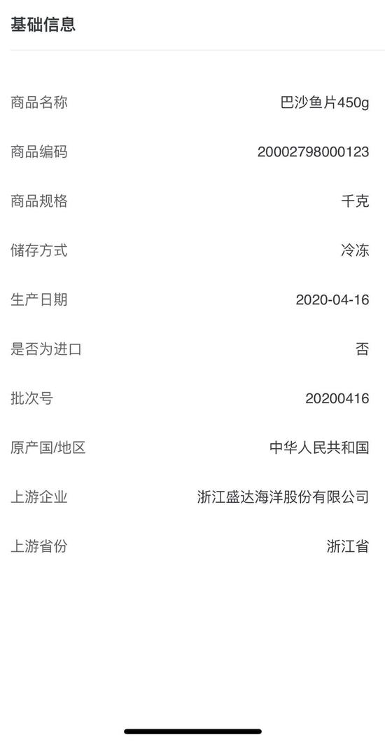 反馈:执法人员在永辉超市马家堡店进行检查时,发现一款“盛达海洋”牌巴沙鱼片实为预包装食品。经调查了解,该商品为国内“浙江盛达海洋股份有限公司”生产加工而成,其所使用的食品原材料为越南进口,而非整个商品是由境外直接进口,属于国内加工生产的预包装食品。该类型商品纳入了“北京冷链”追溯平台管理,但由于该预包装食品为非进口食品,故在原产地一栏注明为“中国”。