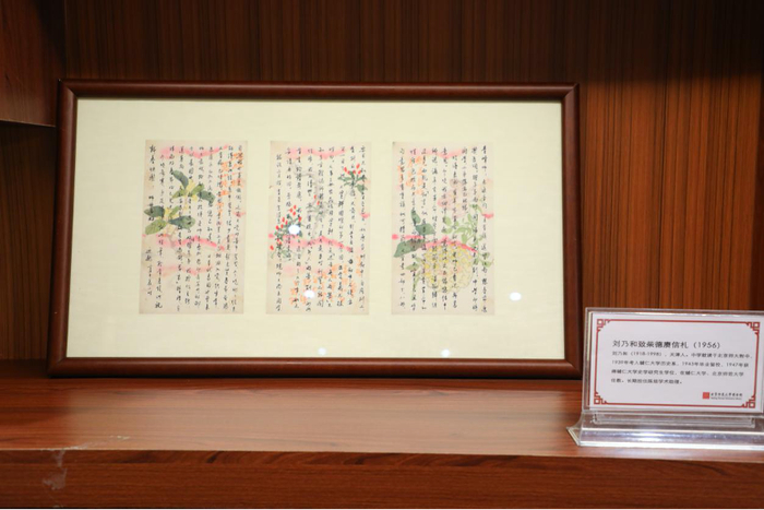 肖老师:这次展览的书信部分主要展示了“陈门四翰林”的往来信札,“四翰林”是20世纪四十年代陈垣先生在辅仁的四个得意弟子:余逊、柴德赓、启功、周祖谟。这些信札体现了他们之间真诚的友爱、相互的关心,以及学术上的互相激励。另外,刘乃和和柴德赓之间的通信也比较多,因为刘乃和长期担任陈垣校长的助手,陈校长年龄已经非常大了,眼睛昏花,柴德赓对自己老师的问候,往往通过刘乃和来传达。学生对老师的那种真挚的牵挂铭刻在字里行间。这些都是很感人的。