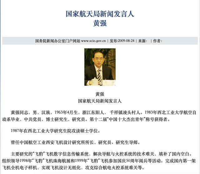 2006年1月,黄强履新国防科学技术委员会秘书长,两年后任国家国防科技工业局副局长。值得一提的是,黄强还曾任国家航天局新闻发言人。