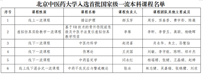 原标题:北中医6门课程入选首批国家级一流本科课程!