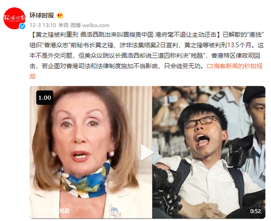 原标题:黄之锋被判重刑 佩洛西跳出来叫嚣指责中国 港府毫不退让主动还击