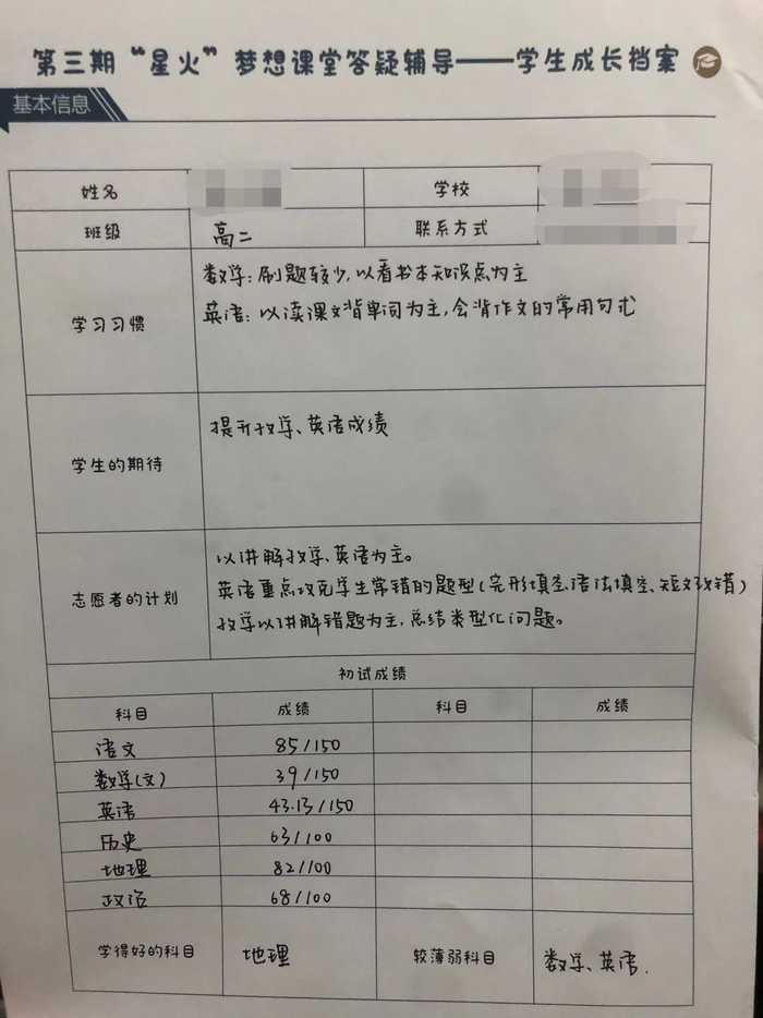 答疑辅导志愿者为宕昌学子建立个人成长档案