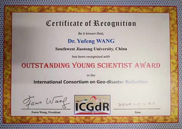 11月20日至23日,地学学院青年教师王玉峰副研究员荣获2019年度国际地质灾害与减灾协会(ICGdR)杰出青年科学家奖,王玉峰副研究员近年来主持和承担了多个重大专项科研项目,取得了令国内外同行瞩目的国际一流创新性研究成果。