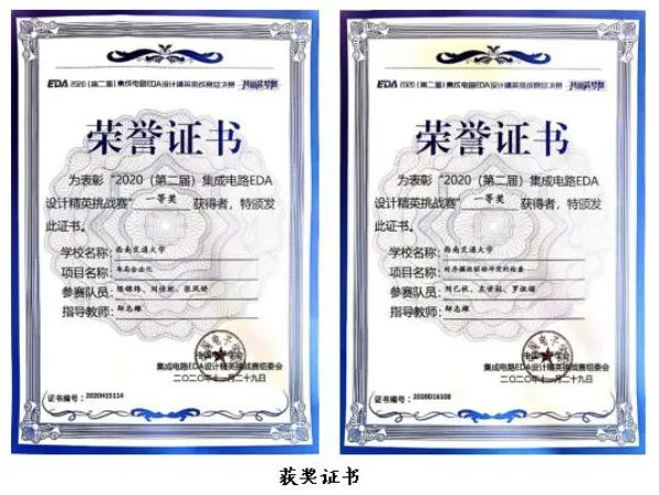 2020年11月27日至11月29日,“2020年集成电路EDA设计精英挑战赛”全国总决赛在南京江北新区隆重举行。作为国内EDA算法领域水平最高的竞赛,本次竞赛得到了几乎国内所有顶尖EDA公司、国际三大EDA巨头(Synopsys、Cadence、Mentor)、国产FPGA第一梯队安路科技、华为海思等行业顶尖公司的支持与参与。在全国总决赛中,经过“Benchmark测试”、笔试、答辩三个阶段,西南交通大学信息科学与技术学院两支队伍均获得了全国一等奖的好成绩,并荣获赛题两项企业特别奖。鉴于我校的优异成绩,我校荣获了“优秀组织奖”,两支队伍的指导教师邸志雄也获得了该大赛组委会颁发的“优秀指导奖”。其中,信息科学与技术学院研究生代表队(队员陈锦炜、刘佳欣、张凤娇)荣获“FPGA EDA工具算法”赛道第1名,团队提出了一种新的FPGA布局合法化算法,在10个Benchmark中9项指标排名第1,1项排名第二,以高出第二名接近15分(百分制)的巨大优势获得赛题冠军;信息科学与技术学院本科生代表队(队员刘已秋),获得“VerilogHDL多驱动解析”赛道一等奖,其中算法benchmark测试为仅有的两支满分队伍之一,笔试成绩第一,并得到了该赛道命题人的高度评价
