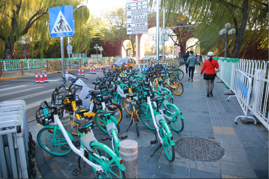 东城交通支队东四大队副大队长任永杰向记者介绍,此次交通秩序整治由北京市公安局启动部署,交管部门作为其中参战单位之一,从11月11号开始,对故宫周边各类交通乱象进行整治和规范。其中,南北池子大街、景山前街及景山东街作为东四大队的管理属地,大队在治理的这几条大街的过程当中,发现共享单车存在乱停乱放、占用非机动车道、占用便道、影响慢行系统通行等情况。