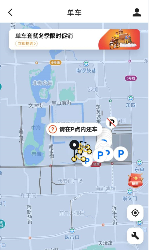 记者通过共享单车APP进行查询发现,目前东西长安街已被滴滴小蓝、青桔骑行和美团骑行等多个共享单车运营企业设置为单车禁停区。此外,东城区故宫、王府井周边,西城区金融街附近,目前都已被划为共享单车的“入栏结算”区。在这些区域内若不在指定停车点停放,将被收取“调度费”。这些“入栏结算”区覆盖故宫、王府井周边的旅游景点、交通枢纽、商业街区、居住区等重要路段。