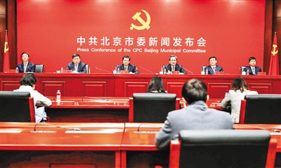 北京市委新闻发布会由市委副秘书长、市委宣传部副部长、市委新闻发言人余俊生主持。市委副秘书长、市委研究室主任、市委新闻发言人刘占兴,市委改革办分管日常工作的副主任胡雪峰,市发改委党组书记、主任谈绪祥,市科委党组书记、主任许强,市商务局党组书记、局长闫立刚分别就坚持以首都发展为统领、壮大中等收入群体、推动京津冀协同发展、加快建设国际科技创新中心、“两区”建设等方面回答了记者提问。