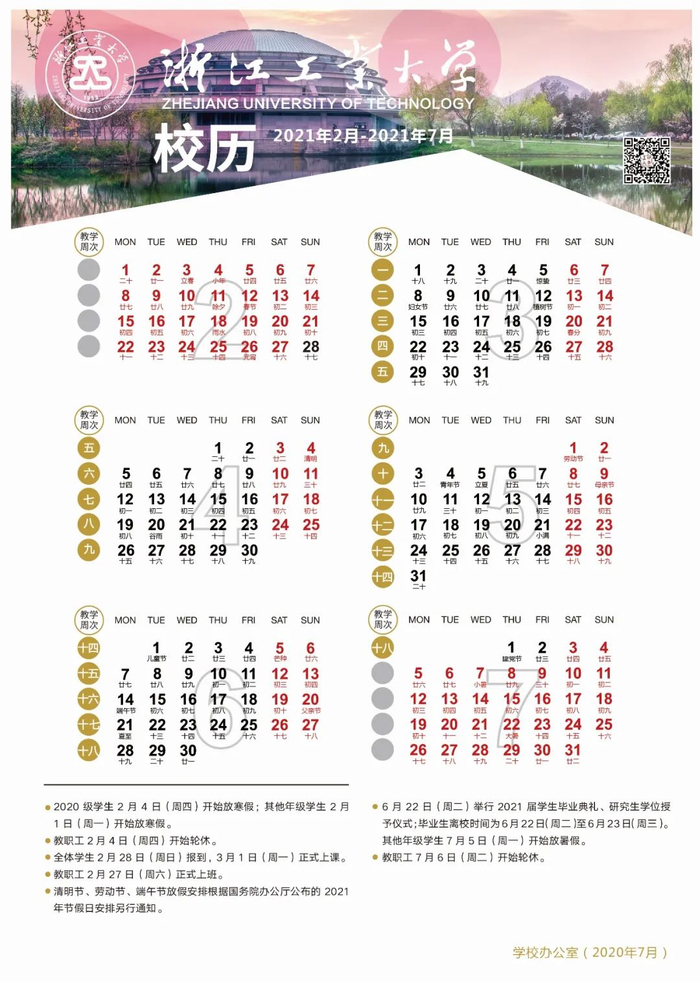 浙江大学:2021年1月29日寒假开始。