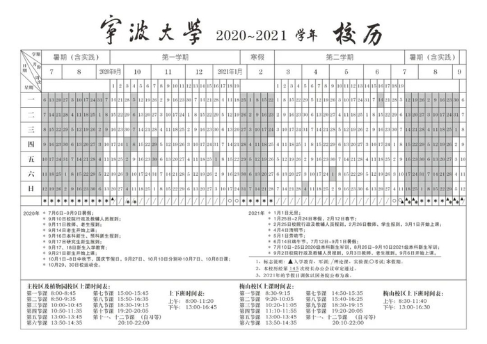 宁波大学:寒假时间为2021年1月25日~2月24日。