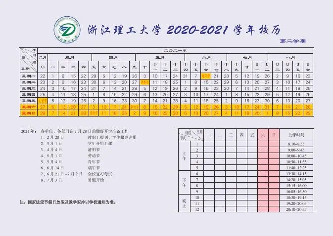浙江理工大学:2021年1月23日开始放寒假。