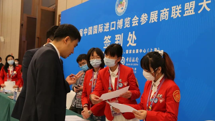 在第三届中国国际进口博览会中,我校派出志愿者112人,其中有岗志愿者83人。他们分布于招展处、招商处与进博会现场综合接待三大重要岗位,主要负责证件注册与展品审查服务、展期签约台现场会务、央企交易团巡馆服务、重要内宾综合接待等工作。