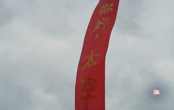 将这颗标语写着“你好,太空”的气球