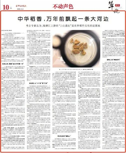 12月4日,《新华每日电讯》十版刊登《中华稻香,万年前飘起一条大河边》。考古学家认为,以浦江县上山遗址为代表的上山文化,是世界稻作文化的源头。