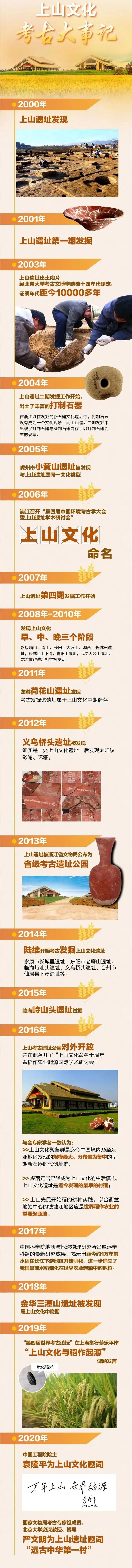 对此,由中国考古学会、浙江省文化和旅游厅、浙江省文物局和金华市政府主办的上山遗址发现20周年学术研讨会确认,上山文化遗址群构成了迄今发现的年代最早的农业定居聚落,上山文化是中国农耕村落文化的源头。