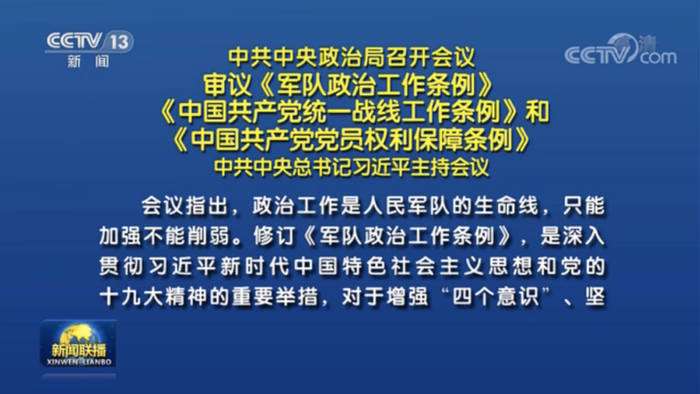 政知君注意到,就在11月30日,中共中央政治局召开会议,审议《军队政治工作条例》。