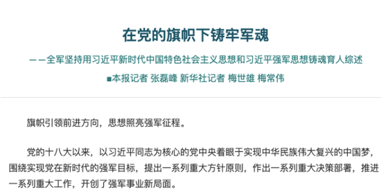 《解放军报》在上述文章中提到,全军坚持把思想政治建设摆在首位: