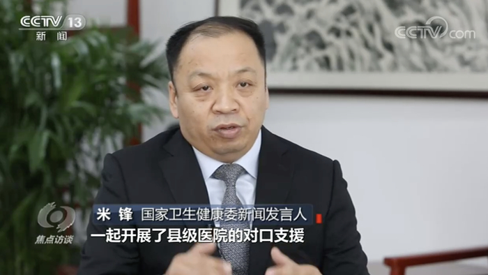 国家卫生健康委新闻发言人米锋说:“这几年来会同相关部门一起开展了县级医院的对口支援,截止到现在组织了1007家三级医院,对口帮扶832个贫困县的1172个县级医院,提升他们的服务能力。截止到2019年底,大概有8万余人次的医务人员支援了贫困地区的县级医院的管理和诊疗,组织了80万基层医疗人员来去摸清贫困群众患病情况,提出了‘三个一批’行动计划,就是大病集中救治一批,慢病签约服务管理一批,还有就是重症兜底保障一批。”