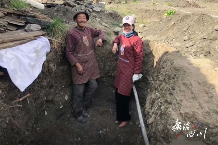 张付玉帮助倪罗卜挖完厕所“清水池”后的合影(王军卫 摄)