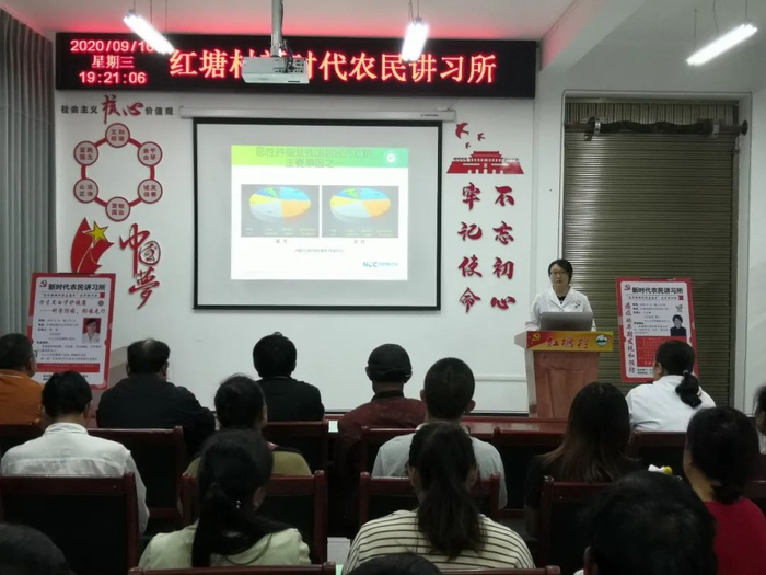 ▲2020年9月16日,中山大学肿瘤防治中心孔亚楠医生在红塘村“新时代农民讲习所”做癌症早期筛查健康科普讲座