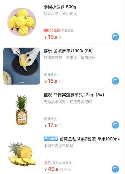 打开盒马App,搜索菠萝,了解更多产品细节。