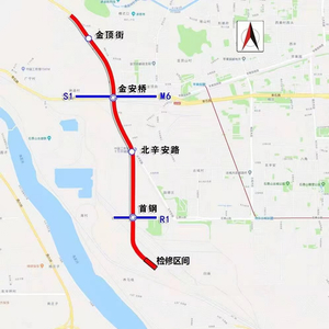 北京地铁11号线西段北起金顶街站,南至首钢站,工程线路长度约4.2公里,全部为地下线,设站4座,其中换乘站2座,分别在金安桥站与6号线、S1线换乘,首钢站与规划R1线换乘。