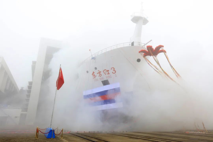 经过6年艰苦卓绝的努力2019年5月30日中国自主设计建造的新一代深远海综合科学考察实习船“东方红3”从上海江南造船厂码头起航