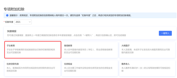 比如2021年新增子女教育扣除,需要申报填写。