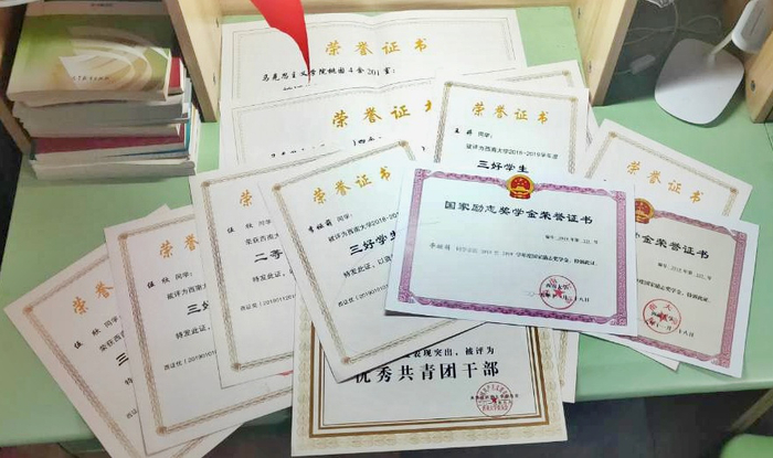 深夜学习工作时,王钰洁总会用床帘遮挡光线,尽量不打扰舍友们休息,而宿舍的其他三人为了让她多睡一会儿,也会轻手轻脚离开寝室,早早到教室占好位置。多亏了舍友们的帮助与支持,最后才有了全寝室一个都没落下。