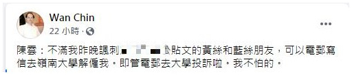 面对民众的批评,陈云不以为然,更扬言网民可以到岭大投诉他,“即管电邮去大学投诉啦。我不怕的”。