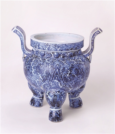 图为《国家宝藏》第三季12月6日首期节目中的国宝“明永乐青花海水江崖纹三足炉”,现藏于故宫博物院。(图片来源:故宫博物院官网)
