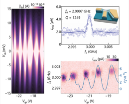 我校郭光灿院士团队郭国平教授研究组和瑞典乌普萨拉大学章贞教授研究组合作,设计制备了与CMOS产线工艺兼容的悬浮单空穴硅晶体管器件,该器件同时也可作为超高频纳米机电谐振器工作。这一复合器件在极低温(~20 mK)高真空环境下,展现出单空穴隧穿行为,其力学谐振频率达到3 GHz,是已报道的同类硅基器件中的最高值。同时,研究人员发现这一复合器件中,机械振动的电学读出主要依赖压阻效应,且与单空穴隧穿行为高度关联。通过对比不同驱动功率下器件的响应,他们发现器件工作在单空穴隧穿状态时,器件的压阻系数提升了一个数量级。
