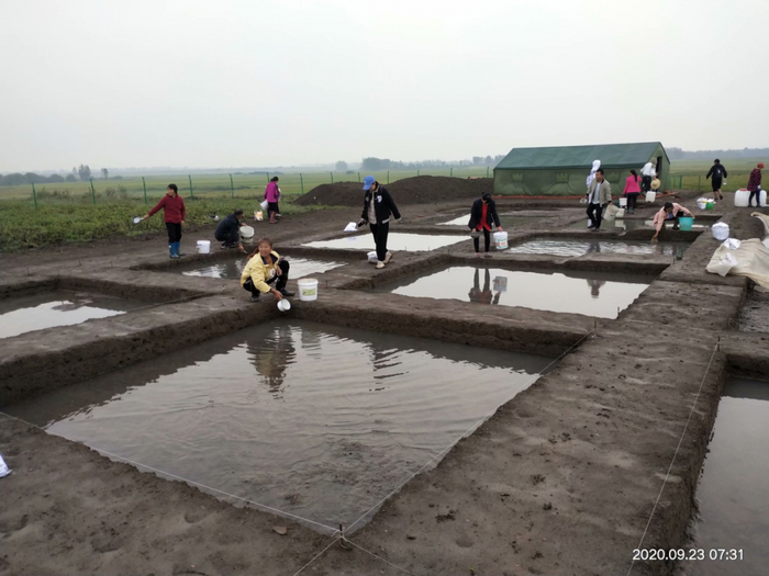 大家负责的探方在下雨后变成了“鱼塘”