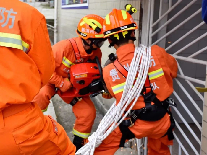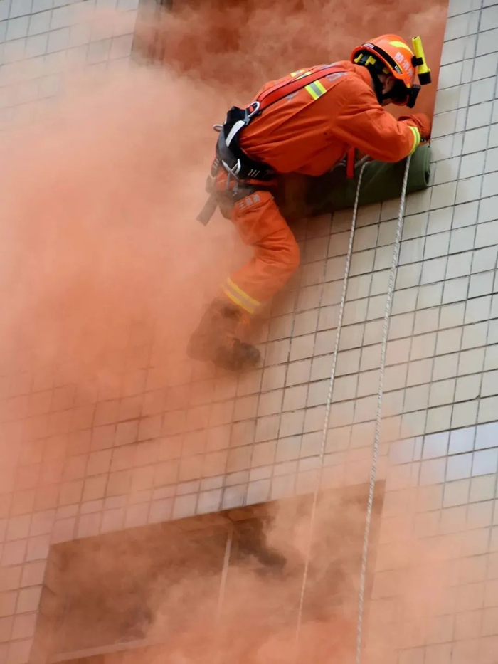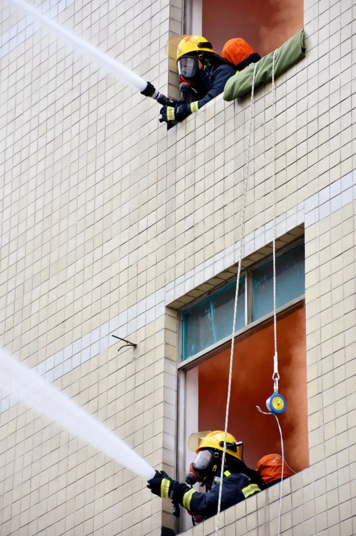 消防员们利用绳索救出楼层被困人员一系列迅速的操作,让在场人员震惊之余,也让同学看到了消防员们临危不惧、救死扶伤的工作精神。