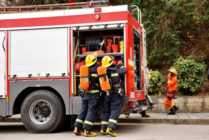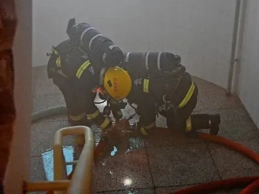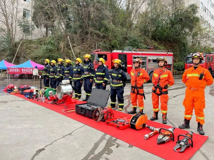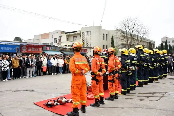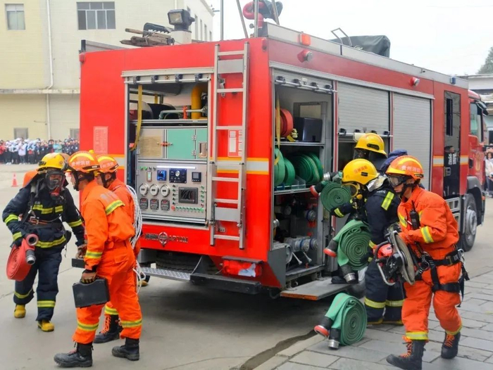 经过前期的积极沟通协调和踩点,演练按照计划有序、安全、顺利进行。伴随着一声声消防警报声响起,四辆消防车到达指定地点开始演练,消防员们在指挥员下达作战命令后,展开“救援”工作。