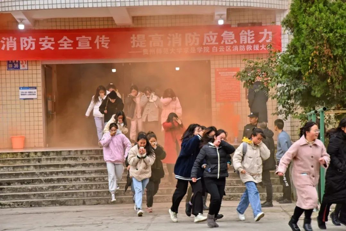 为进一步提高大学生的火灾防范安全意识,学习相关消防知识。12月8日下午,贵州师范大学求是学院协同白云区消防救援大队在31栋宿舍举行了消防演练,学院领导及师生代表、白云校区管理办、后勤集团、保卫处相关负责人观摩演练。