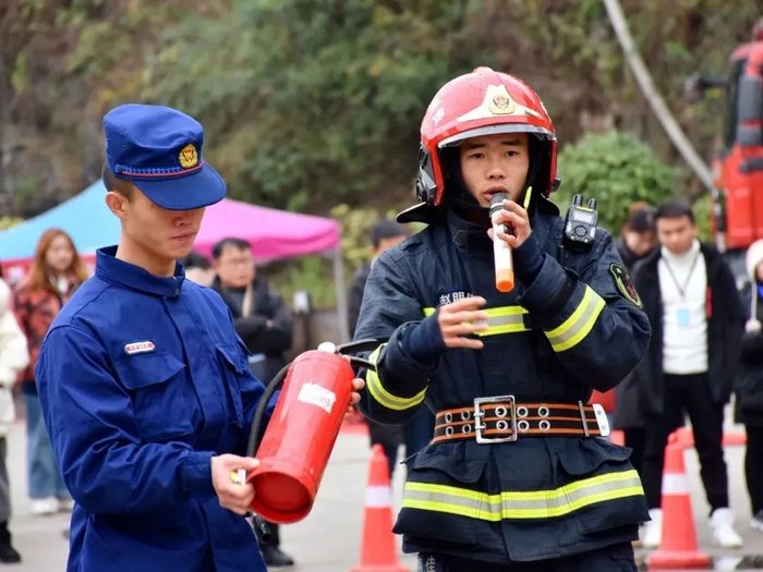 演练最后,消防员对灭火器的使用进行现场教学,同学们在指挥员指挥并保证安全的情况下,对灭火器进行实际操作,通过亲身体验,切实掌握在火灾来临时的一些求生本领及紧急疏散知识。