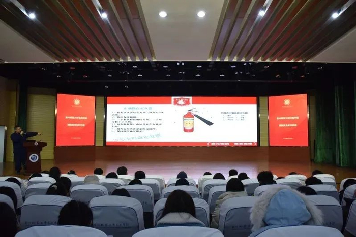演练结束后,师生代表移步到求是讲堂聆听了消防安全知识讲座,白云区消防救援大队党委委员、消防中队指导员王意翔对消防知识进行详细的讲解,在座的师生通过现场观摩和讲座学习,对消防安全有更深刻的了解,学会了在初期火灾中如何进行自救,以及预防对策等知识。