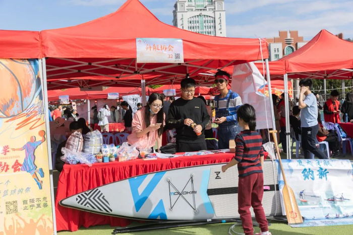 各个社团的摊位前都围满了人