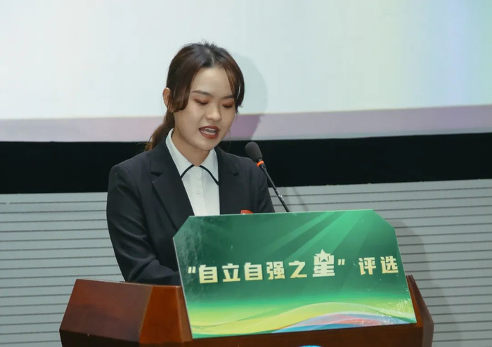 自立自强之星,对我来说不仅是一个奖,一个荣誉的称号,对我来说是一个莫大的认可。自立自强之星这个烙印会一直陪伴我的工作生活,这是一种态度,有了它,一切都可以笑对!
