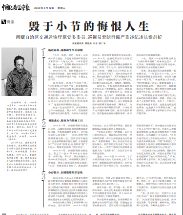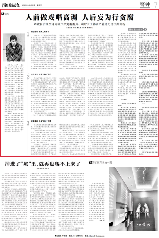 在这些人当中,王锦河、索朗群的贪腐案件,被中纪委机关报作为典型案例,专门进行了曝光,其中贪腐细节发人深省。