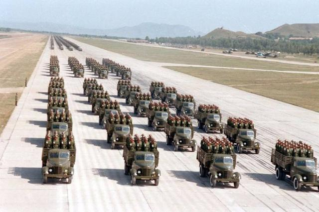 据资料记载,中苏关系紧张的时代,我军最精锐的6个甲种师步兵团都实现了卡车机动,每个连10多辆,平均每个班1辆,而同时期普通部队,一个团只有几辆卡车,连队都还是用马车拉补给和弹药。