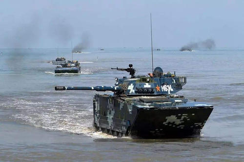 第三种是两栖机械化部队,包括海军陆战队和陆军两栖旅,主要装备各种两栖作战车辆,包括ZBD-05、ZBD-08两栖装甲战车为代表的突击车辆,遂行两栖登陆作战。